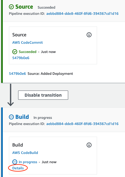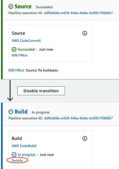 Wait a minute for the build to start. Click on the Details link to see execution details.