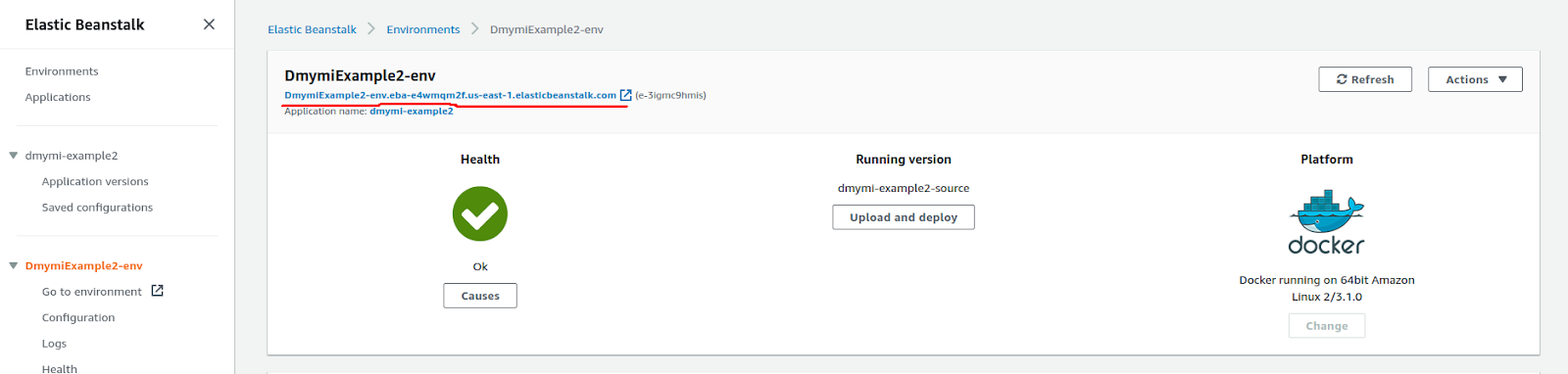 Hopefully by now, our instance should be ready. Head over to the EB page and you should see a green tick indicating that your app is alive and kicking.