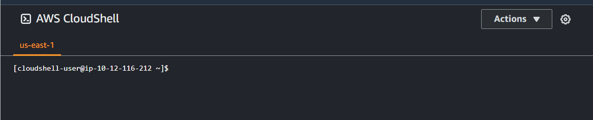 You will do most of the work from the Amazon Cloud Shell, a command line environment running in the Cloud. This virtual machine is loaded with all the development tools you'll need (aws cli, python) and offers a persistent 1GB home directory and runs in AWS, greatly enhancing network performance and authentication. Open the Amazon Cloud Shell by clicking on the icon on the top right of the screen: