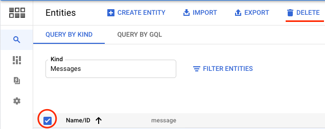 Select Kind "Messages". Check the box selecting all the entities and click delete.
