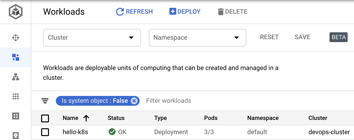 Workloads that are deployed to your Kubernetes Engine cluster are displayed in the Google Cloud Console. Navigate to Kubernetes Engine and then Workloads.