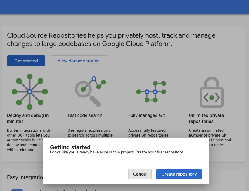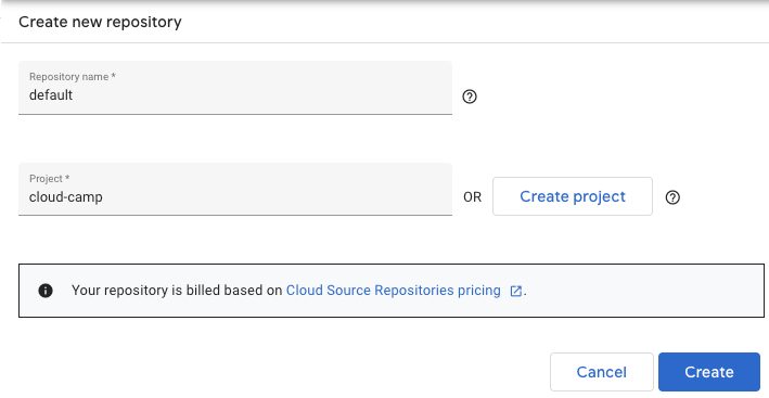 $ gcloud source repos clone default --project=${GOOGLE_CLOUD_PROJECT}