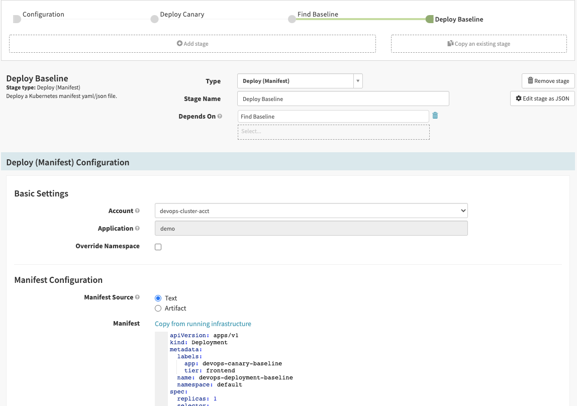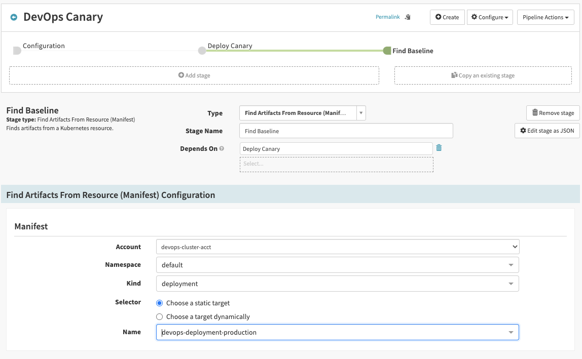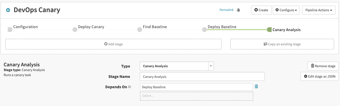 Repeat for Baseline. While Selecting Canary Analysis, click on Add Stage.