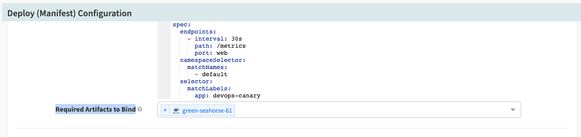 Scroll to the Required Artifacts to Bind and select our pipeline image artifact.