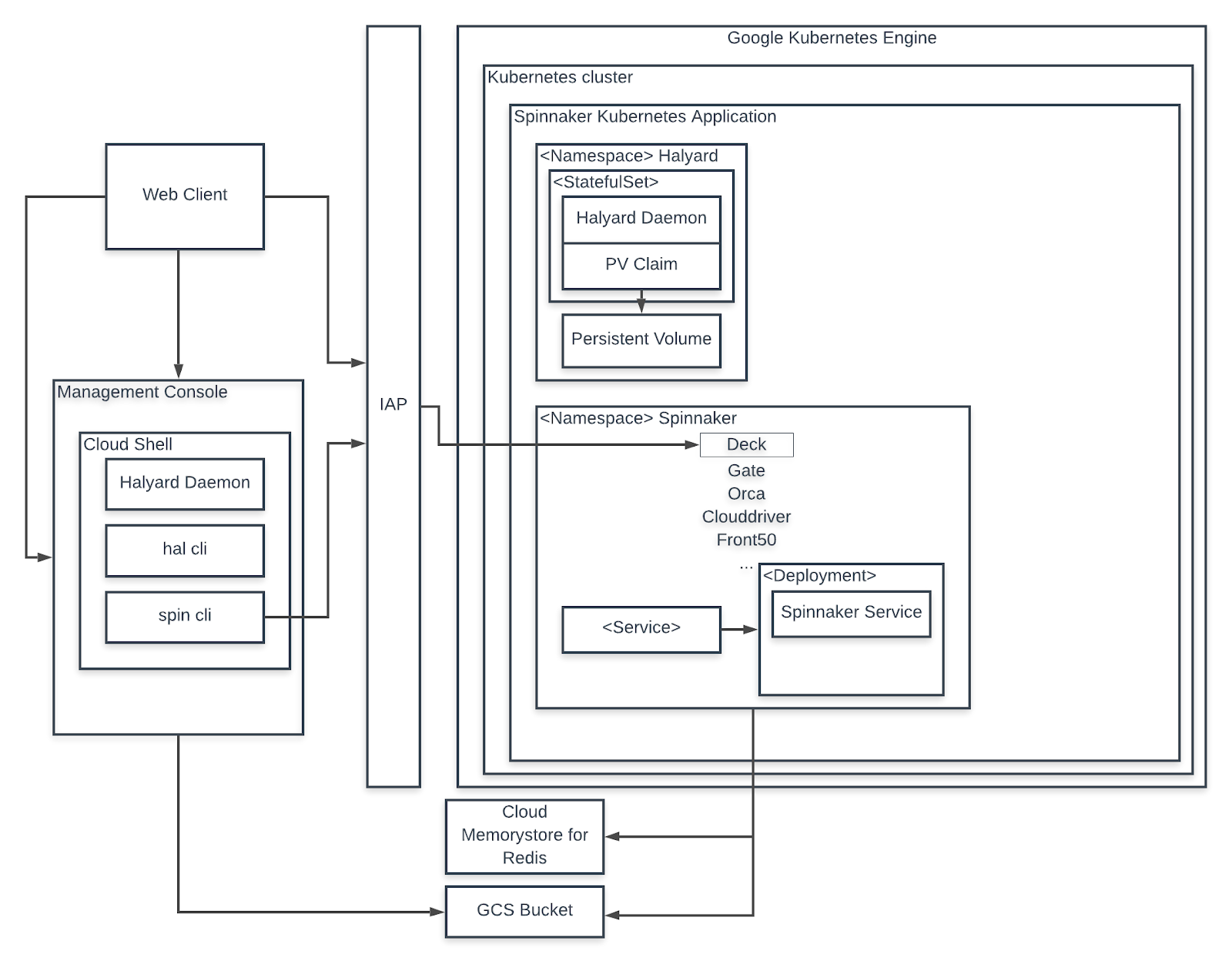 To install spinnaker, a Google provided setup script can be used. They can help you set up and manage Spinnaker in a production-ready configuration, optimized for GCP. The scripts set up resources (GKE, Cloud Memorystore, Cloud Storage buckets and service accounts), integrate Spinnaker with related services such as Cloud Build, and provide a Cloud Shell-based management environment for your Spinnaker installations, with helpers and common tools such as spin and hal.
