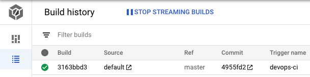 Let's trigger the pipeline. Open a new tab and go to Cloud Build History:
