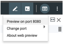To see the program running, click the Web Preview button in the toolbar of Google Cloud Shell. Then, select Preview on port 8080.