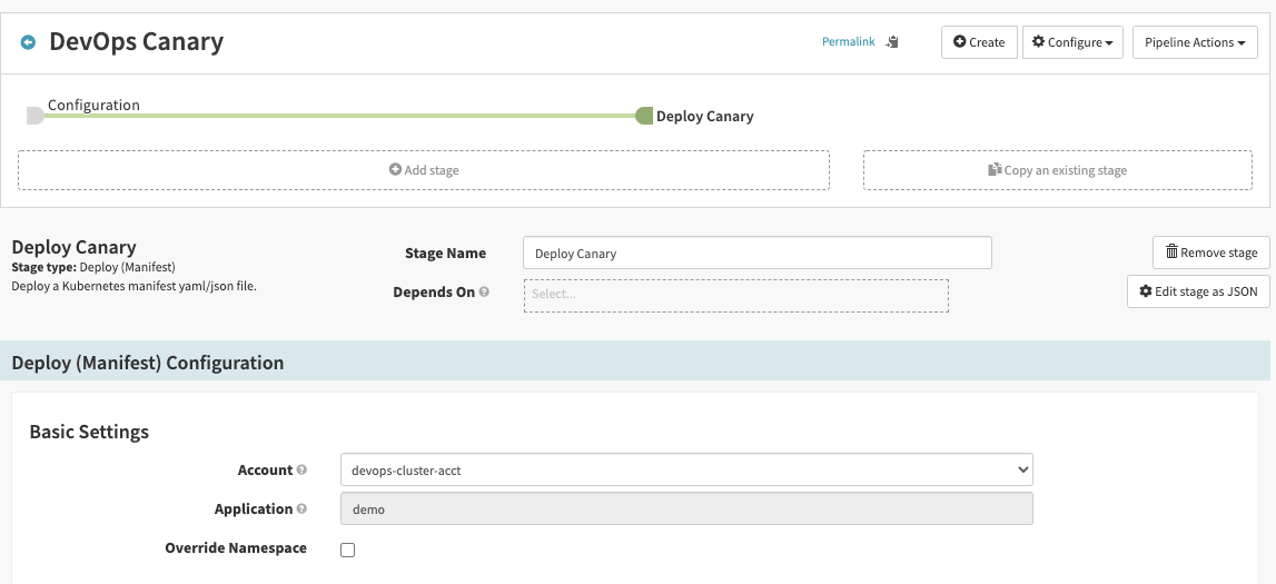 For Stage Name enter a new name or leave it as Canary Analysis.