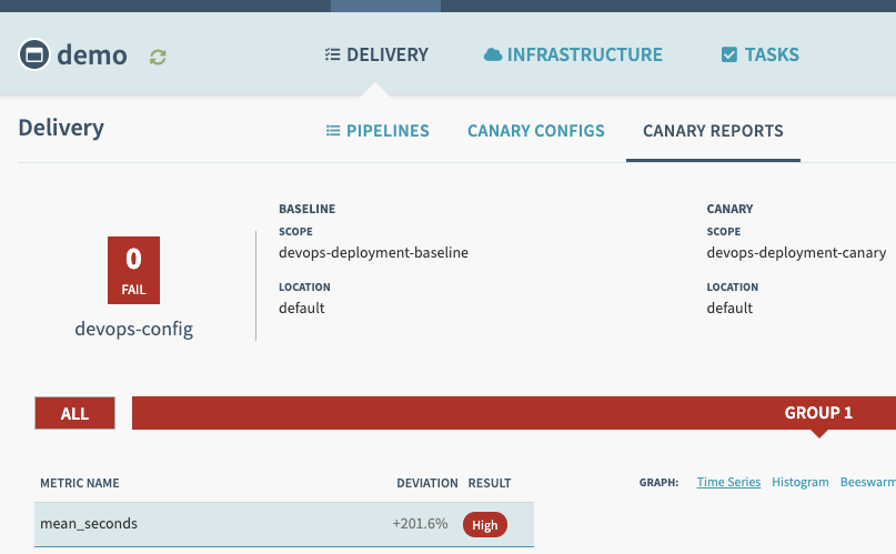 When the pipeline completes go to the Canary Reports. Click the latest analysis and explore the results.
