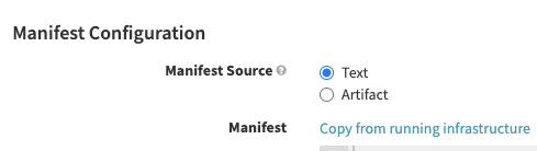 In the Manifest Source select Text and click Copy from running infrastructure.